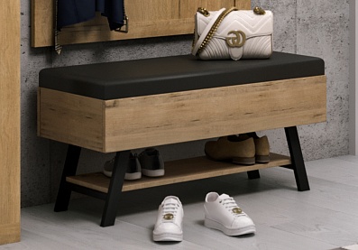 Банкетка Магнум Дуб бунратти, Черный, Экокожа