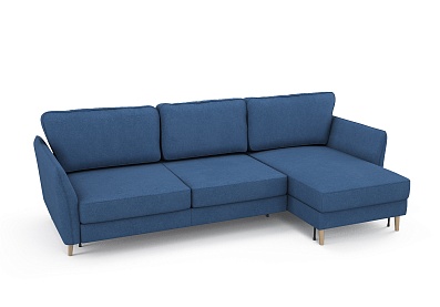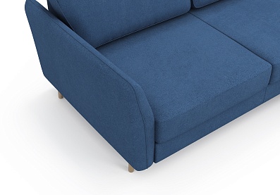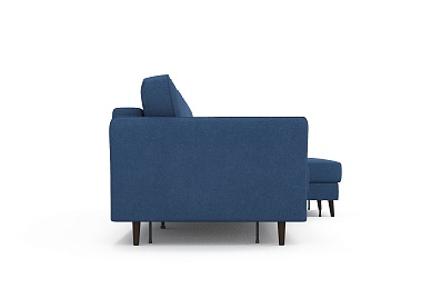 Диван АННИКА NEW 3-х местный с оттоманкой и темными опорами Темно-синий (Happy 784), Велюр