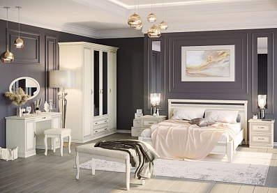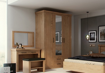 Шкаф Адажио АГ-201.04 (Я16) с полками, зеркалами, штангой и 2 выдвижными ящиками / Валенсия с зеркалом Валенсия