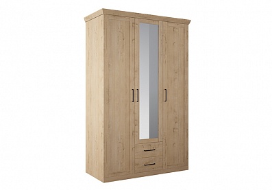 Шкаф Кантри с 2 выдвижными ящиками, полкой и штангой для одежды с зеркалом Валенсия