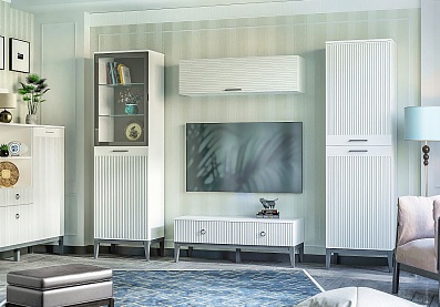 Гостиные гарнитуры белые создают в помещении светлую и уютную атмосферу. Такое решение способно в значительной мере визуально увеличить объем комнаты, а также выполняет практическую функцию — можно упорядоченно хранить большое количество различных вещей, включая одежду и аксессуары, занимая при этом минимум пространства в зале.