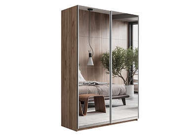 Шкаф-купе Lux / двери зеркала 120x230 Дуб табачный, С полками