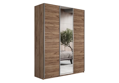 Шкаф-купе Lux 3-х-дв. / зеркало по центру 210x230 Дуб табачный, С полками