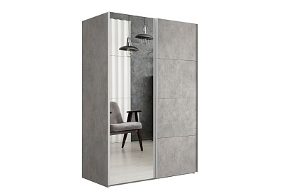 Шкаф-купе Lux с одним зеркалом 120x230 Бетон, С полками