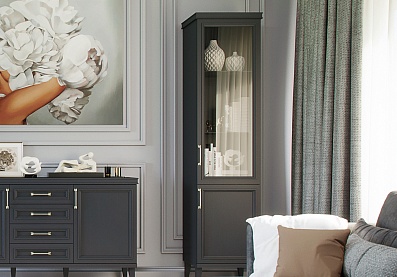 Шкаф Чарли с витриной (правый, со шпонированными полками) Серый агат