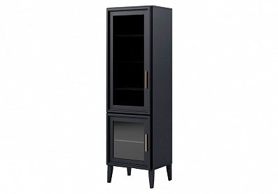 Шкаф Чарли с витриной (левый, со шпонированными полками) Серый агат