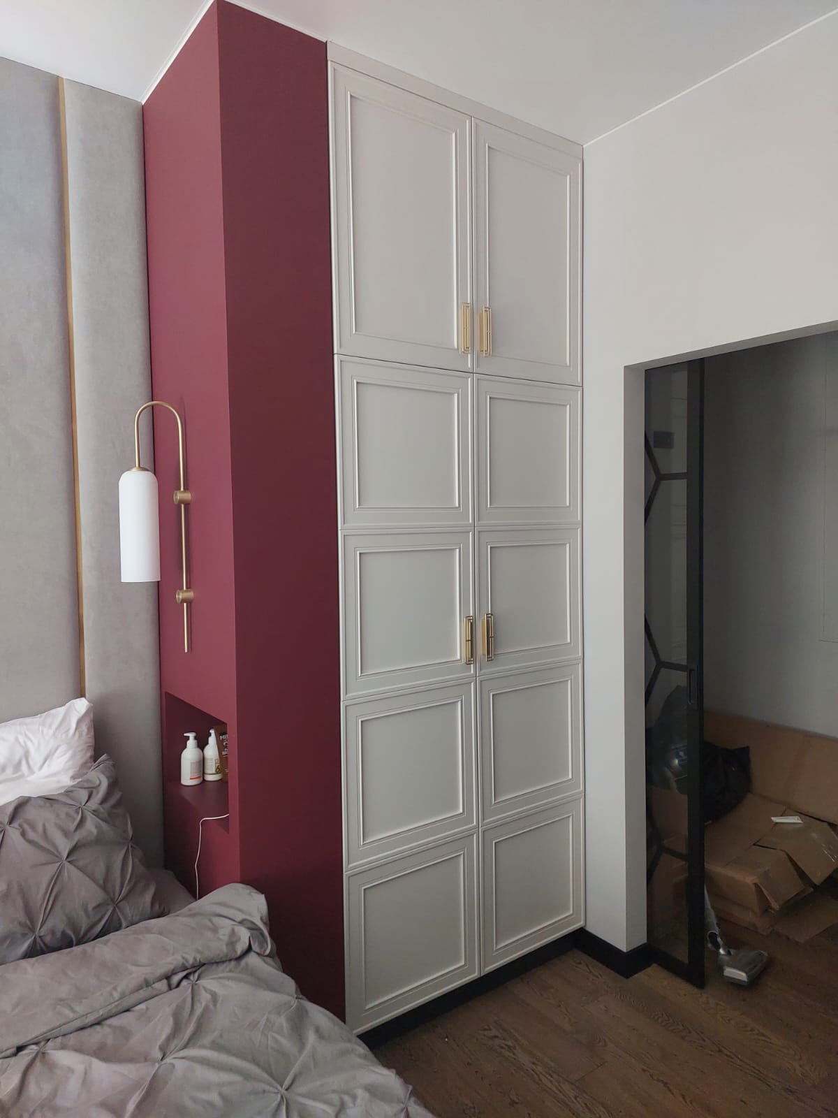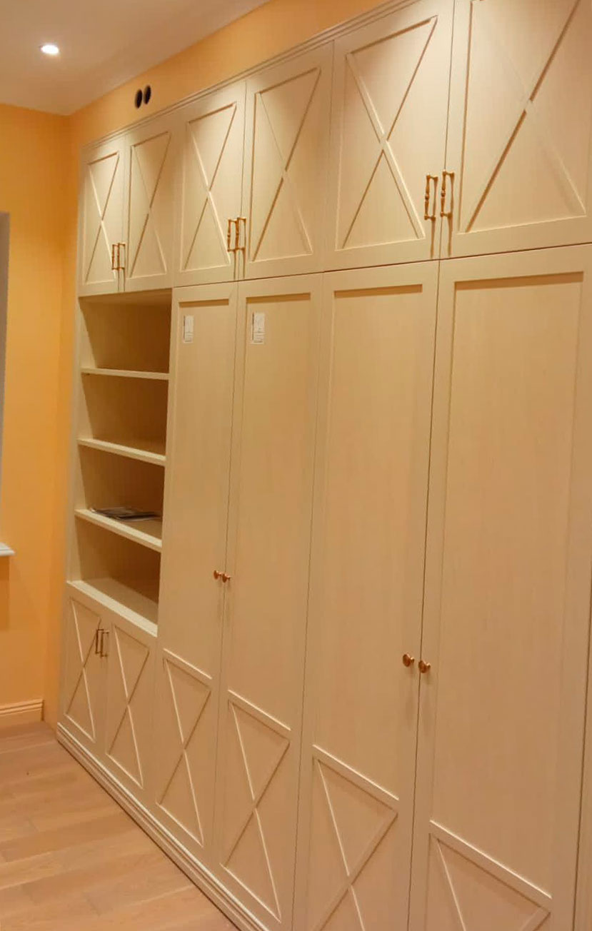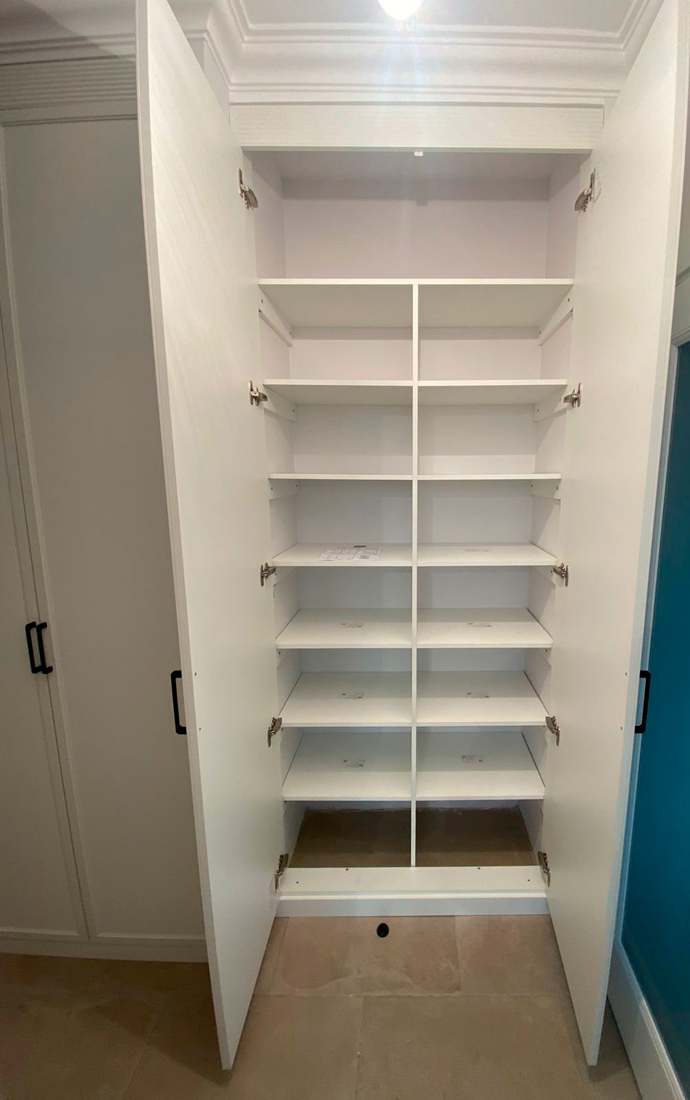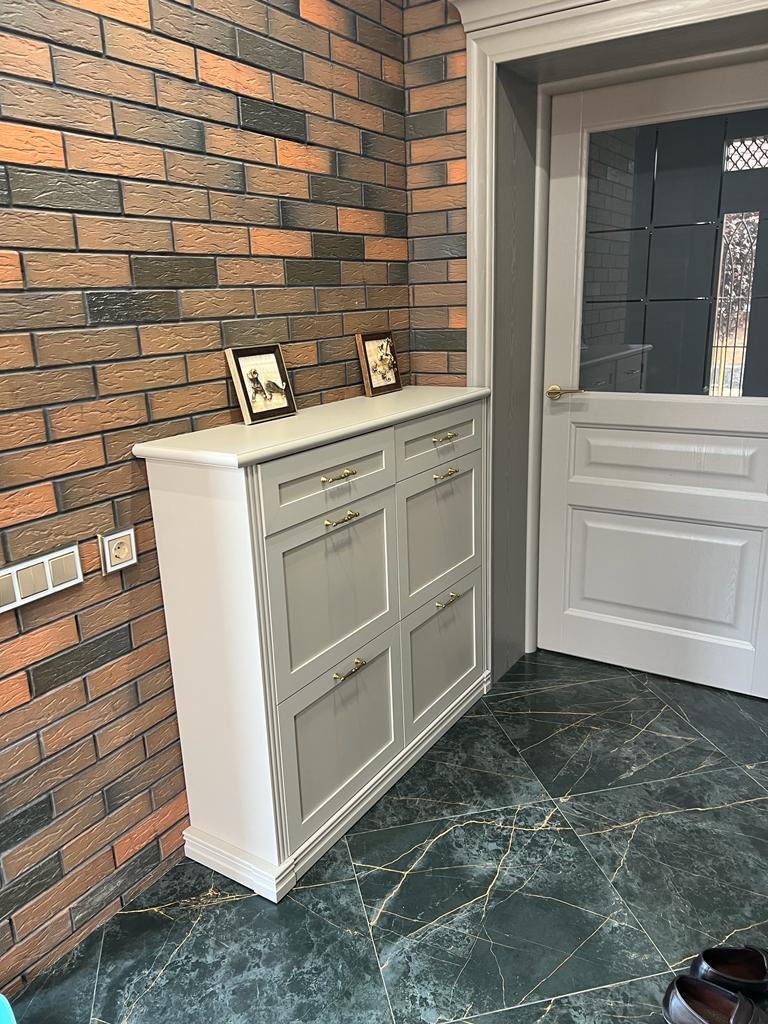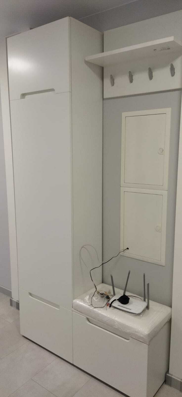Вместе с клиентами мы разработали схемы будущей мебели, определили расположение ящиков, полок и крючков. Также подбирали материалы, цвета и фурнитуру, согласовывали детали, чтобы мебель гармонично вписалась в интерьер. Проводили замеры и проделали огромную работу. Производство осуществлялось на нашей фабрике «Ангстрем». Все было изготовлено в срок, доставлено и собрано до Нового года, что стало приятным сюрпризом для клиентов.