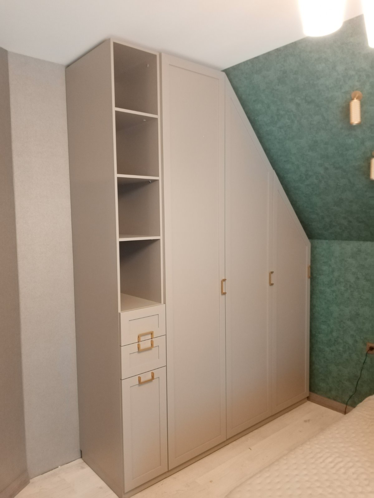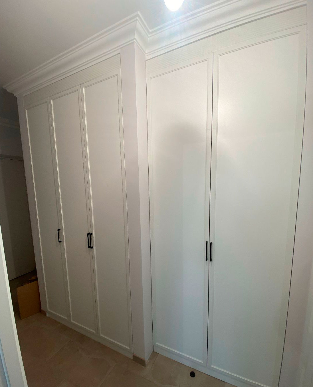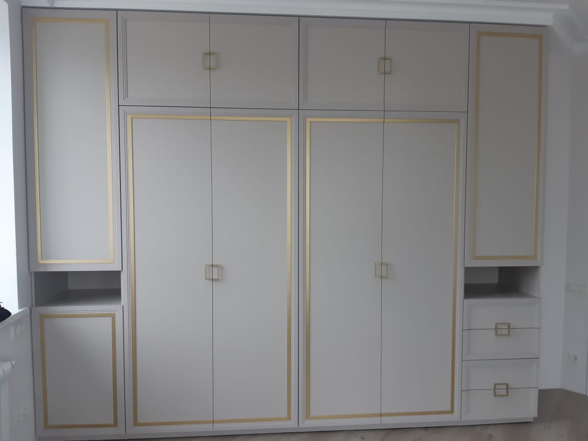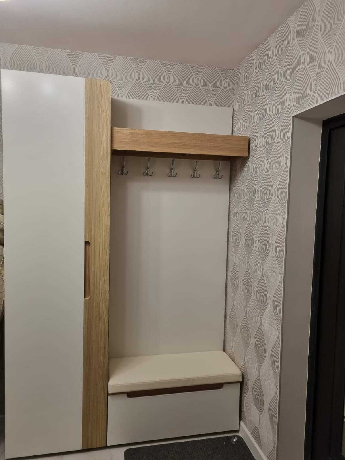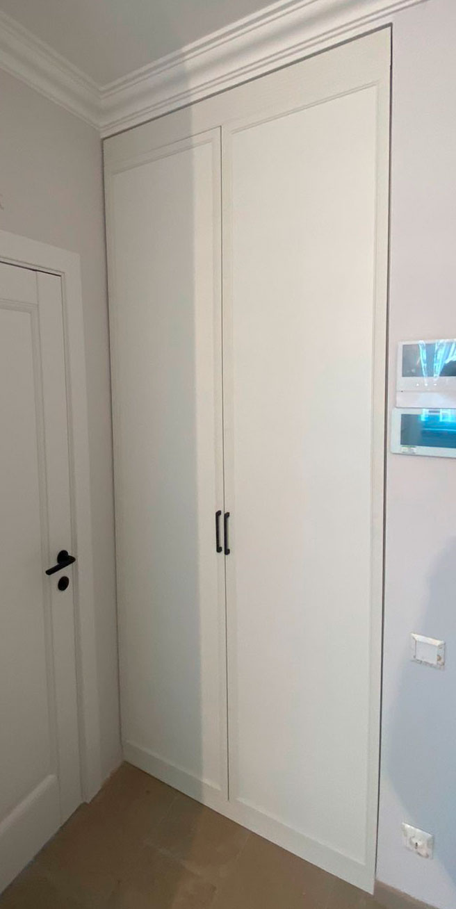 Вместе с клиентами мы разработали схемы будущей мебели, определили расположение ящиков, полок и крючков. Также подбирали материалы, цвета и фурнитуру, согласовывали детали, чтобы мебель гармонично вписалась в интерьер. Проводили замеры и проделали огромную работу. Производство осуществлялось на нашей фабрике «Ангстрем». Все было изготовлено в срок, доставлено и собрано до Нового года, что стало приятным сюрпризом для клиентов.