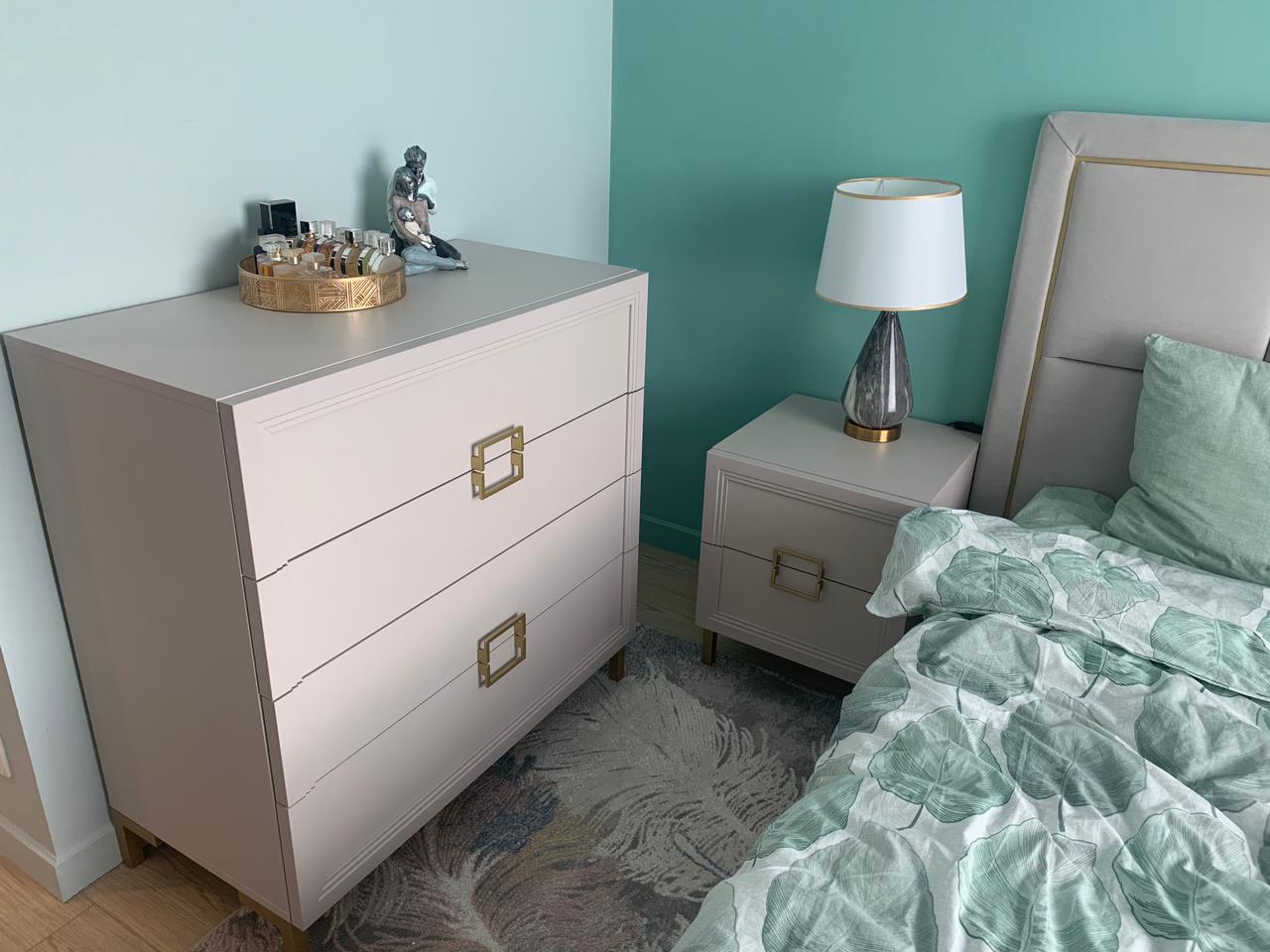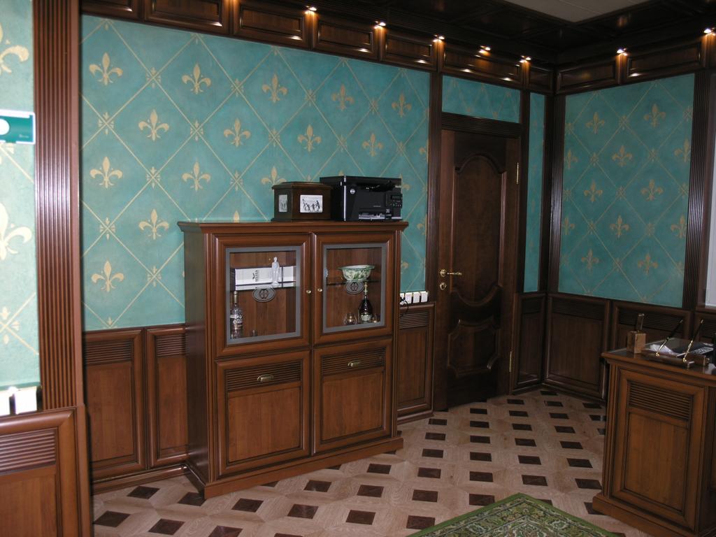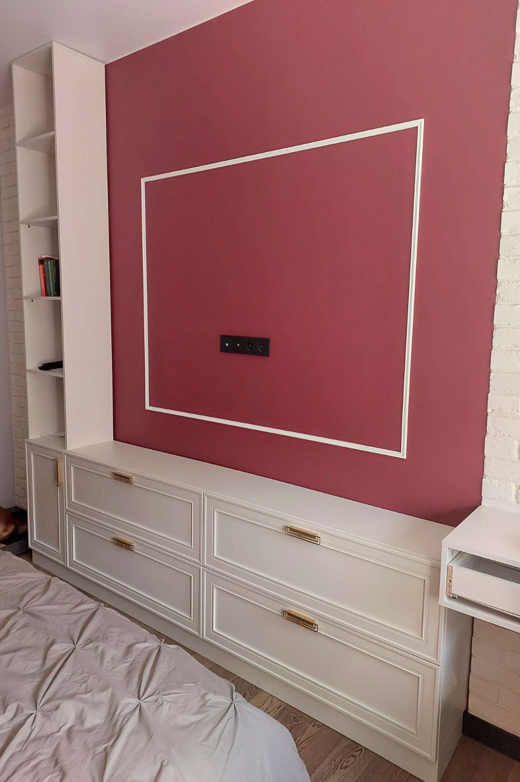 Спальня и кабинет, несмотря на одинаковые белые шкафы, воспринимаются по-разному благодаря различному освещению. Спальня, выходящая во двор, получилась уютной и "брутальной", в то время как кабинет, за счёт солнечного света и сочетания белого и зеленого, – свежим и благородным. Разница в освещении и расположении комнат (спальня – теневая сторона, кабинет – солнечная) создала желаемый эффект. В итоге, спальня приобрела черты уютного будуара, что, по нашему мнению, гармонирует с интересами клиента, увлекающегося литературой.