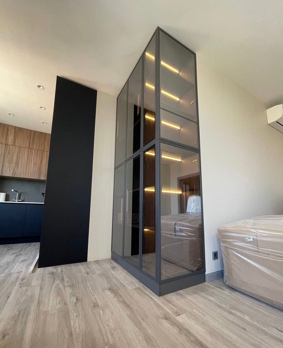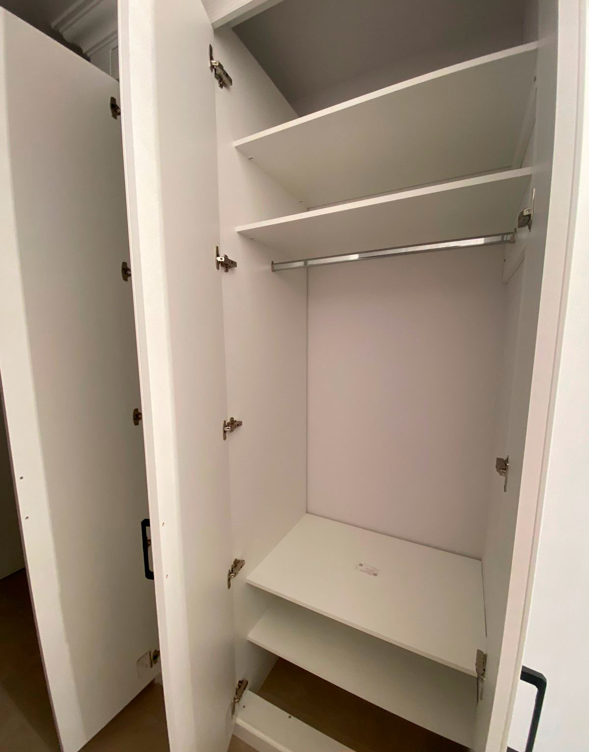 Система хранения: Основная система хранения расположена в длинном коридоре, где установлен огромный шкаф-гардероб во всю длину стены. В гардеробе предусмотрены удобные выдвижные ящики для обуви (с push-to-open механизмом).