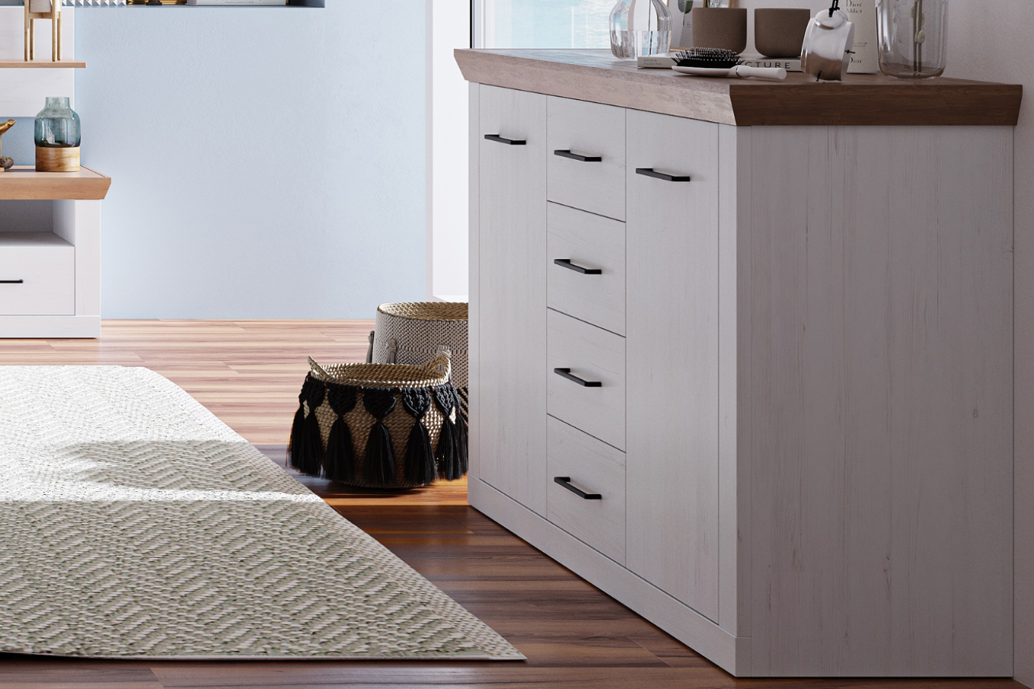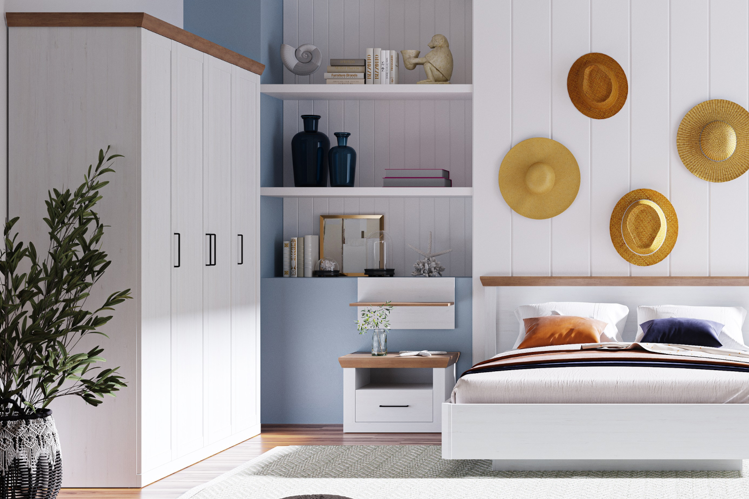 Мебель выполнена в цветах «блан шене» и «дуб бунратти»;