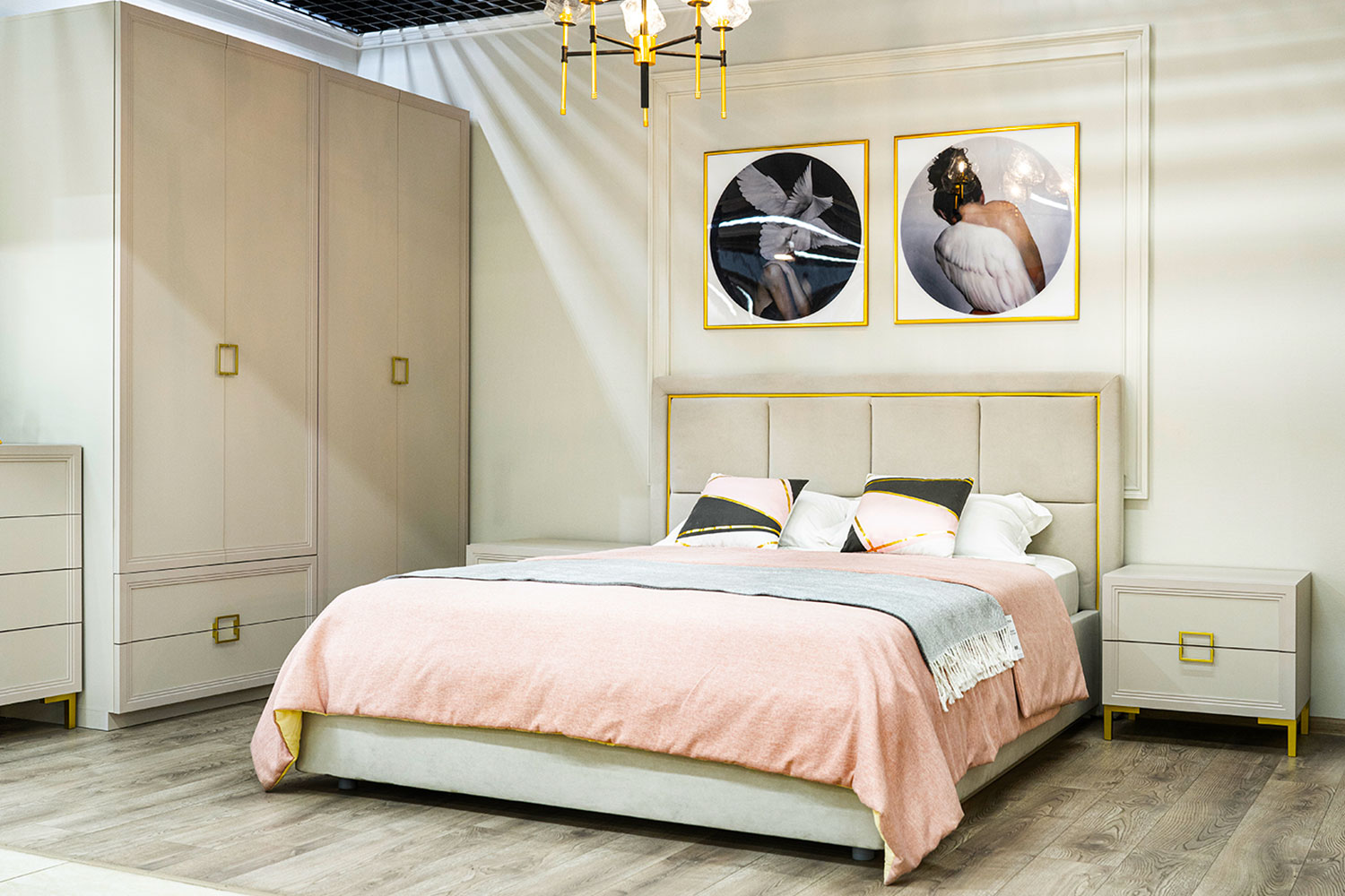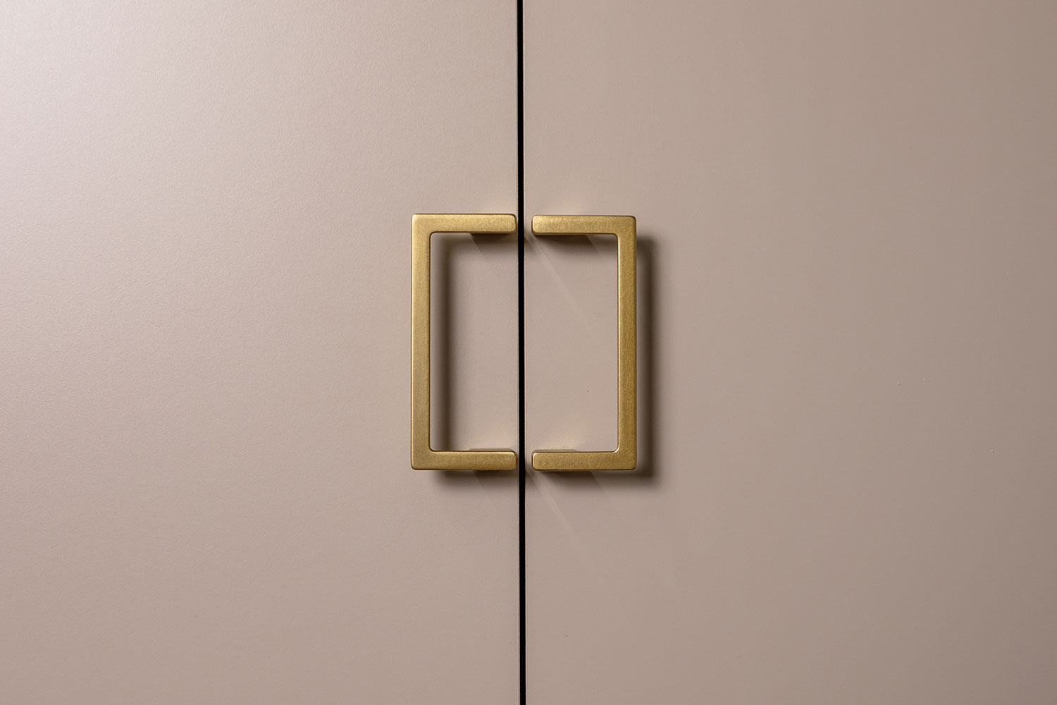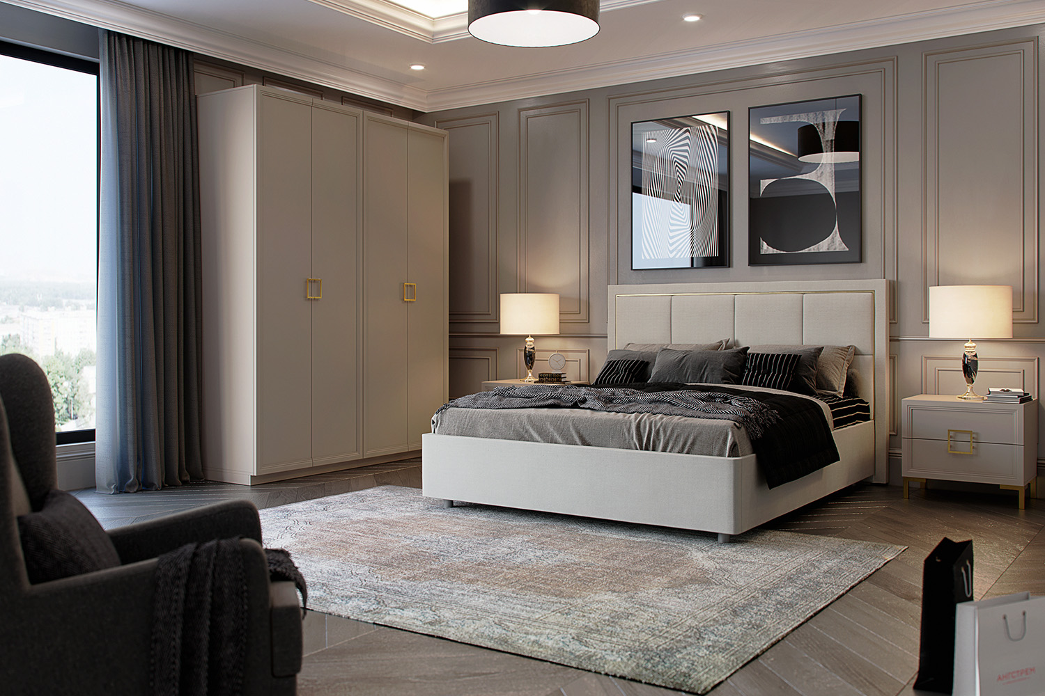 Роскошь серого кашемира в сочетании с фурнитурой под золото выглядит солидно и эффектно. Совмещенные вместе ручки образуют прямоугольник, дублирующий общую геометрию мебели. Фасад рамочной конструкции обрамлен двойными филенками. Опоры изделия скрыты элегантным декоративным цоколем, окрашенным в основной тон. Такая модель станет отличным вариантом для оформления спальни, гостиной, прихожей или детской в стиле ар-деко, классика, модерн.