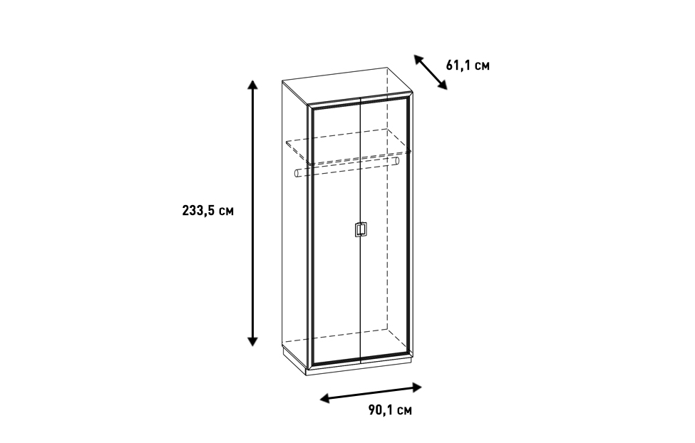 – описание: размер 233.5x90.1x61.1 см, стиль ар-деко, минимализм, назначение для одежды, цвет кашемир серый.
