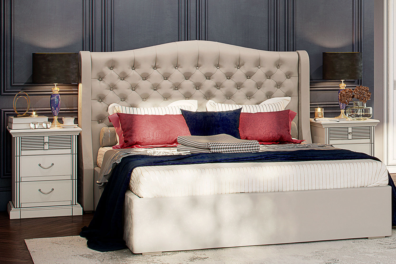 - Мягкая кровать «Орнелла» идеально впишется в классический интерьер, который отличается симметричными линиями и сочетает в себе роскошь, эстетичность и практичность. Оттенки серого позволят создать ощущение комфорта в спальной комнате, а это очень важно для нормального отдыха.