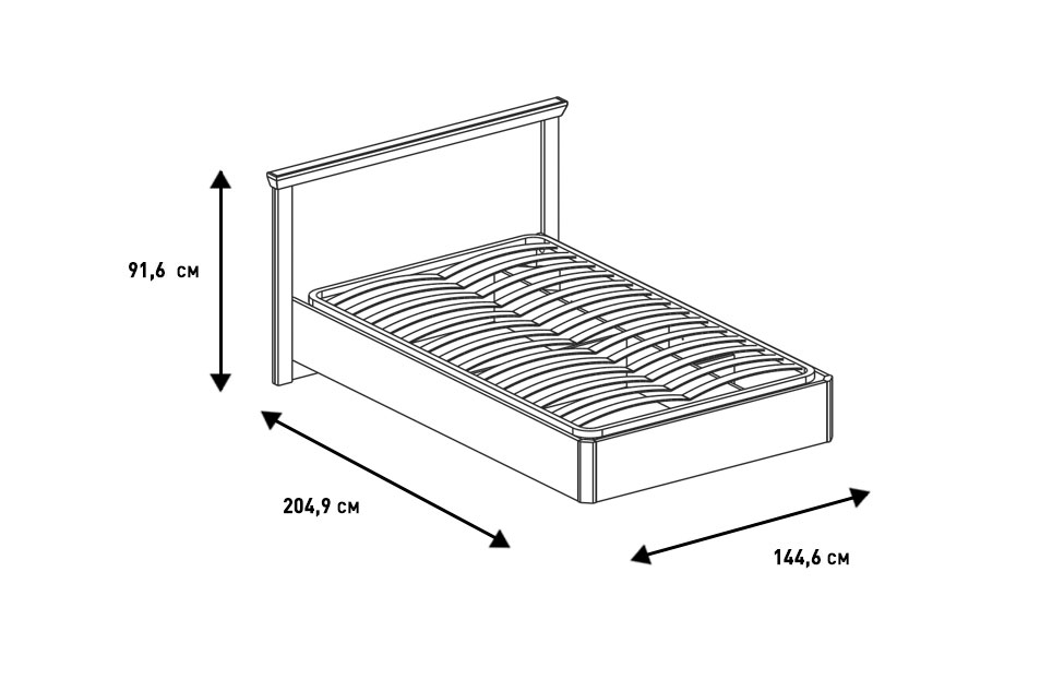 Каркас мебели изготовлен из экологичной и прочной ЛДСП, основание — из металлической рамы, перекрытой упругими деревянными ламелями. Расстояние между латами обеспечивает качественный воздухообмен, а достаточная высота над полом позволяет задействовать в уборке робот-пылесос. Сглаженные углы гарантируют безопасную эксплуатацию в темное время суток. Допустимая нагрузка на спальное место составляет от 120 до 150 кг.