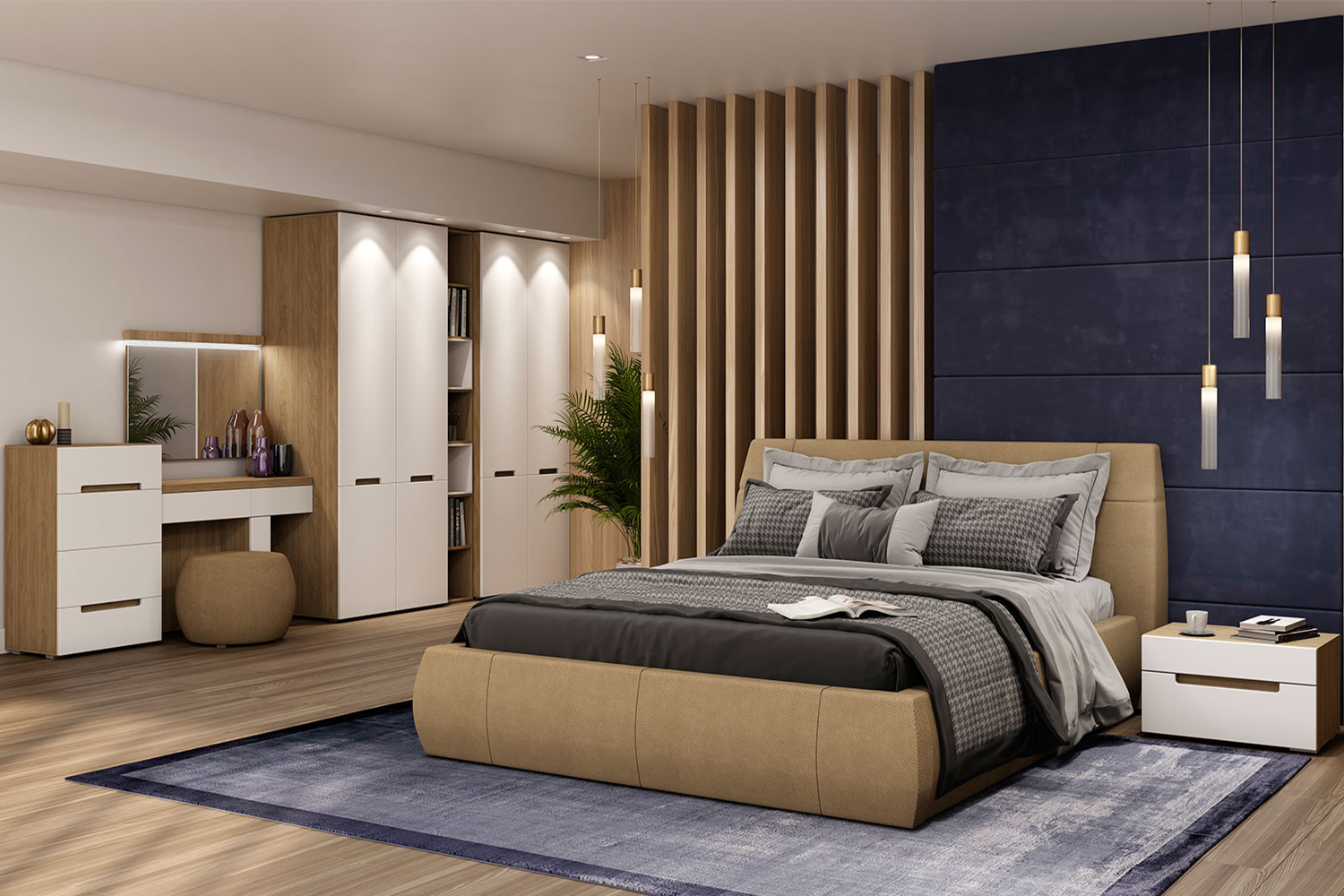 • Спальня в современном стиле. Такая мебель универсальна и подойдет интерьерам в стилях эко, скандинавский, минимализм и лофт (в его более «легком» варианте);