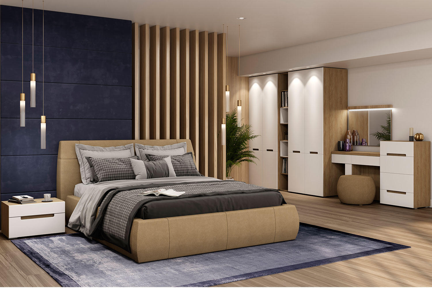 В зависимости от стиля, который вы хотите создать в вашем доме, можно дополнительно подобрать минималистичные торшеры или стеллажи — для эко или скандинавского стилей, аксессуары из металла или стекла — для «легкого» лофта, графичные постеры — для минималистичного интерьера. Не забудьте про туалетный столик, который сделает утренние и вечерние ритуалы еще приятнее.