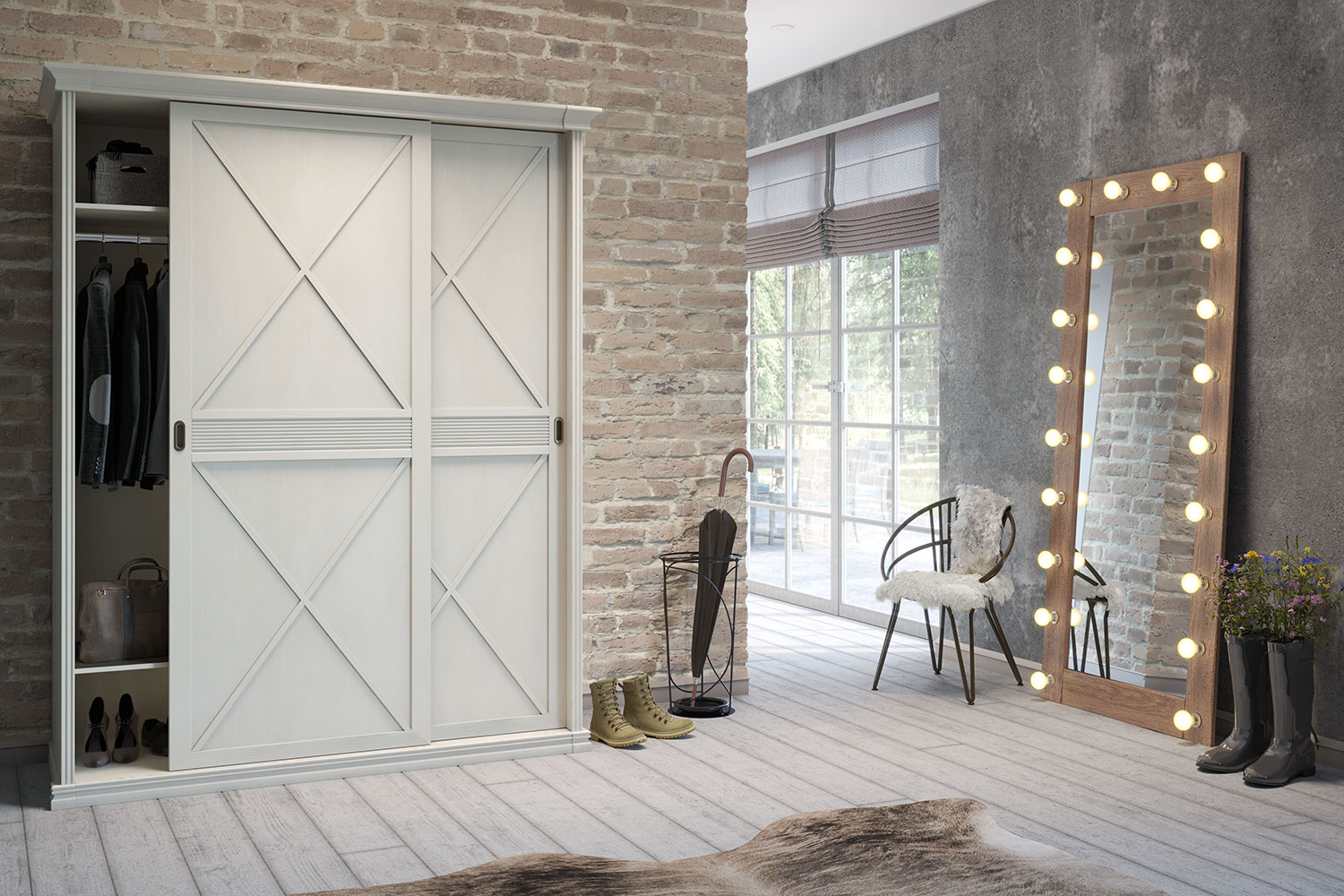 - Для дверей шкафа используется раздвижной механизм.