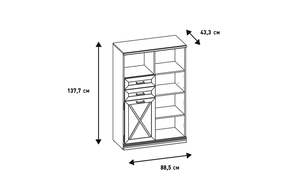 – описание: стиль прованс, кантри, классический, неоклассика, размер 137.7x88.5x43.3 см, цвет валенсия, назначение для книг, для посуды, многоцелевой.