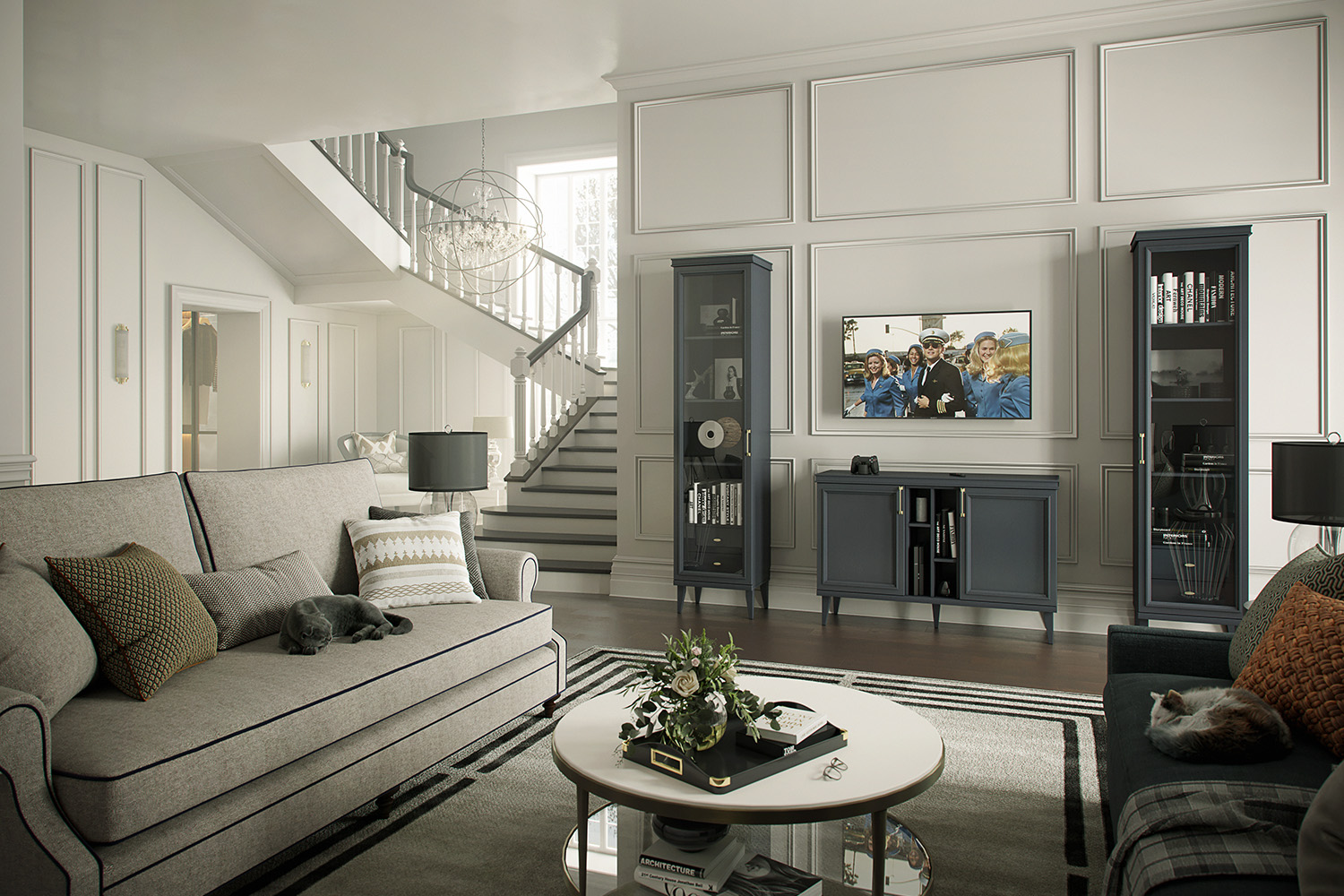 – описание: назначение для книг, для посуды, многоцелевой, стиль английский, неоклассика, цвет серый уголь, размер 218.5x52.7x42.5 см.