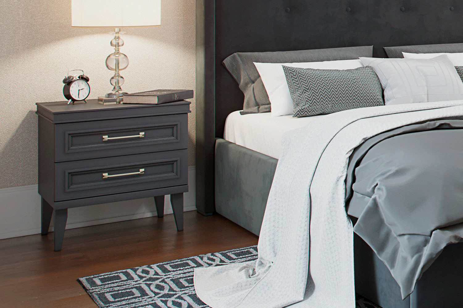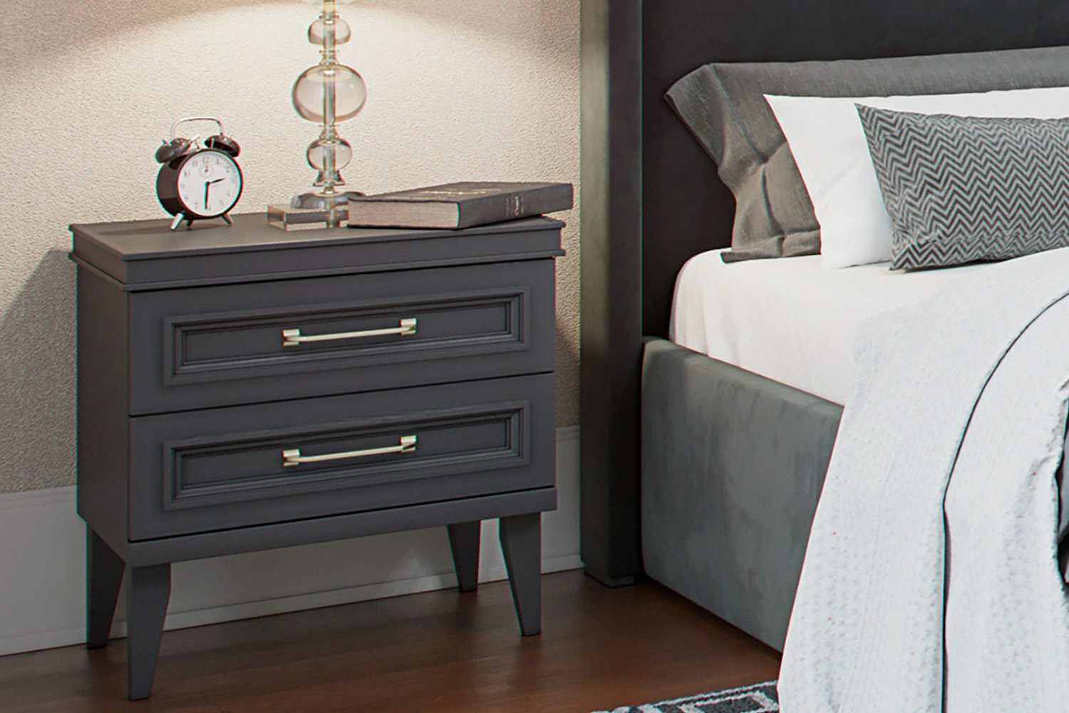 – описание: цвет серый уголь, назначение для спальни, стиль английский, неоклассика, размер 58x51.9x42.5 см.