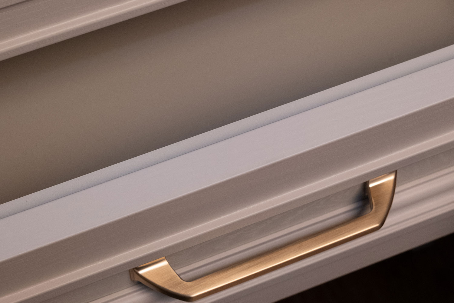 - В выдвижных ящиках используются направляющие скрытого монтажа со встроенным доводчиком.