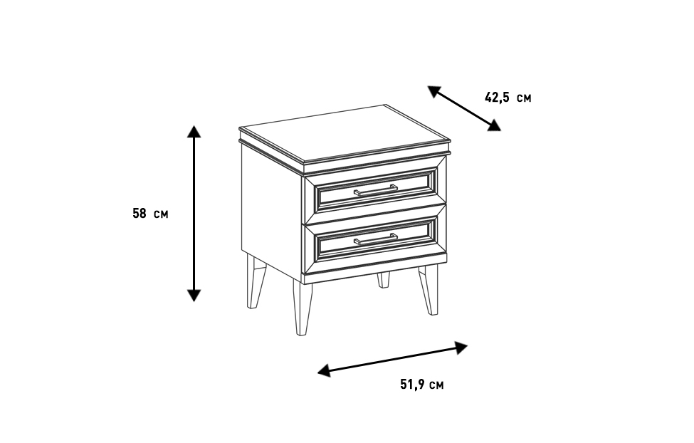 – описание: стиль английский, неоклассика, цвет ярко-серый, размер 58x51.9x42.5 см, назначение для спальни.