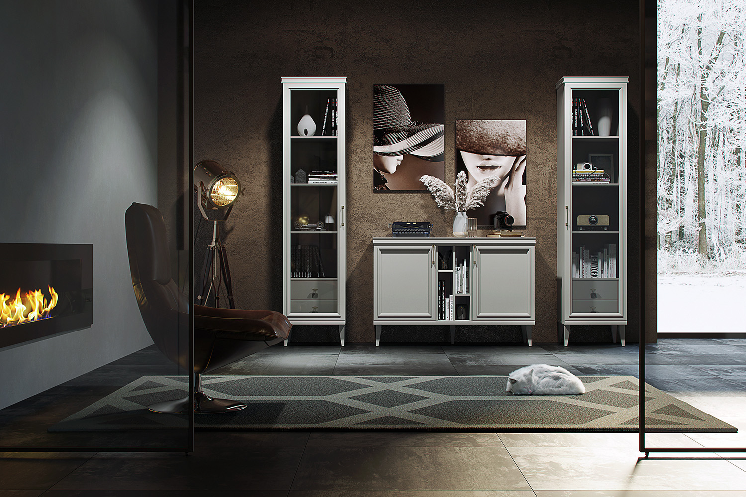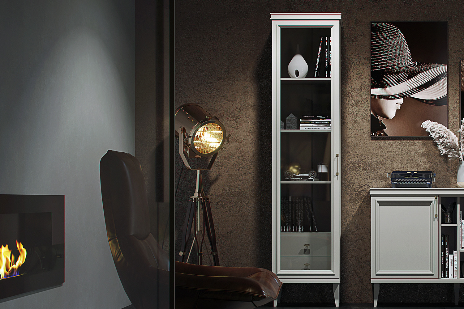 – описание: назначение для книг, для посуды, многоцелевой, стиль английский, неоклассика, размер 218.5x52.7x42.5 см, цвет ярко-серый.