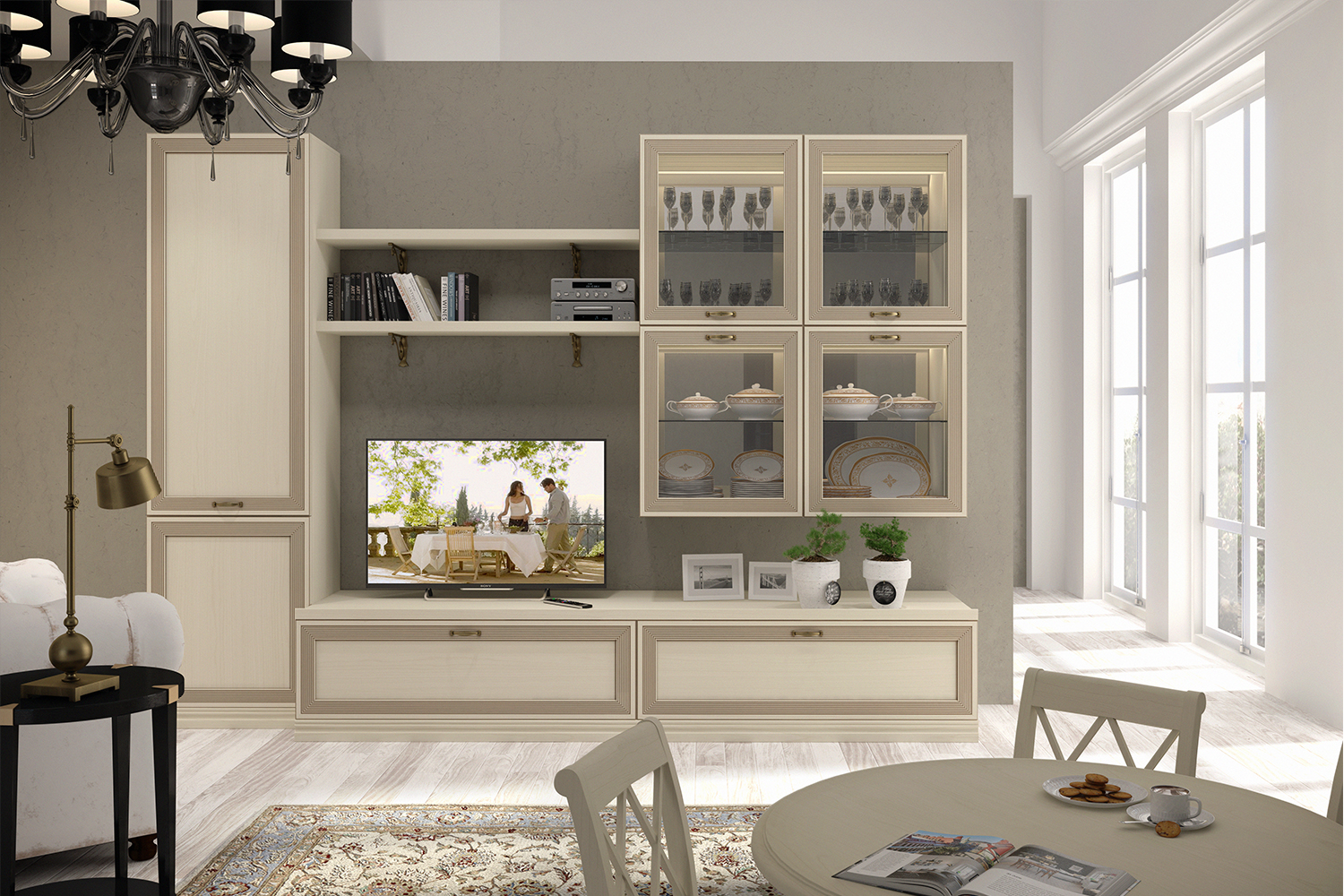 • Гостиная Адажио понравится семейным людям, ценителям классики и традиций. Она создана для уютных вечеров с близкими людьми, размеренному чтению любимых книг и просто приятных кинопросмотров за кружкой чая;