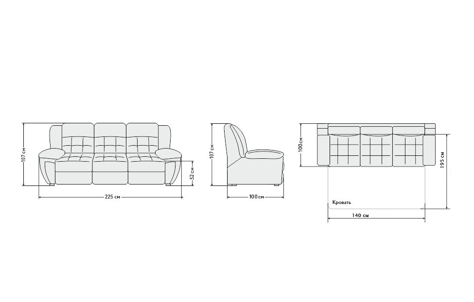 – описание: цвет бежевый (belgium 7002), стиль современный, модерн, размер 107x225x100 см, размер спального места 140 х 195 см.