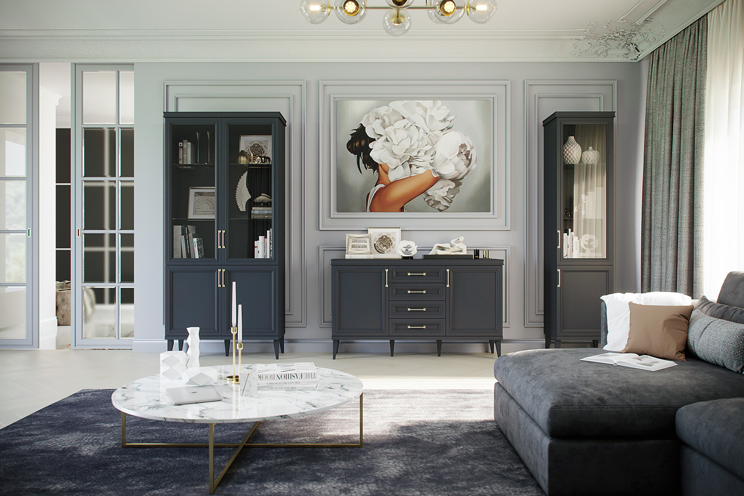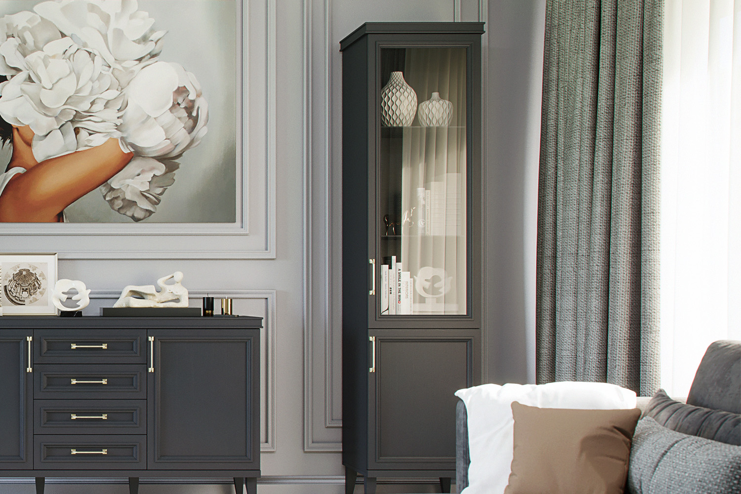 – описание: стиль английский, неоклассика, размер 218.4x52.7x42.5 см, назначение многоцелевой, цвет серый уголь.