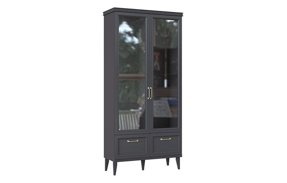 • Шкаф 2-створчатый с 2 стеклянными фасадами и 2 выдвижными ящиками;