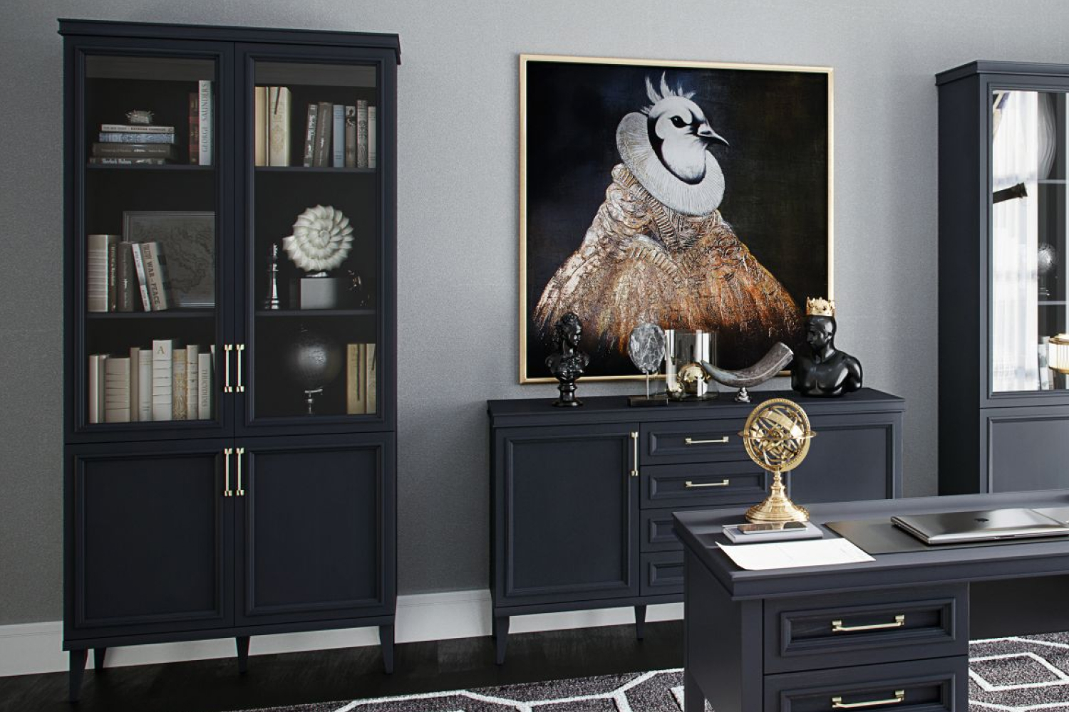– описание: стиль английский, неоклассика, размер 218.4x357.6x42.5 см, цвет серый уголь.