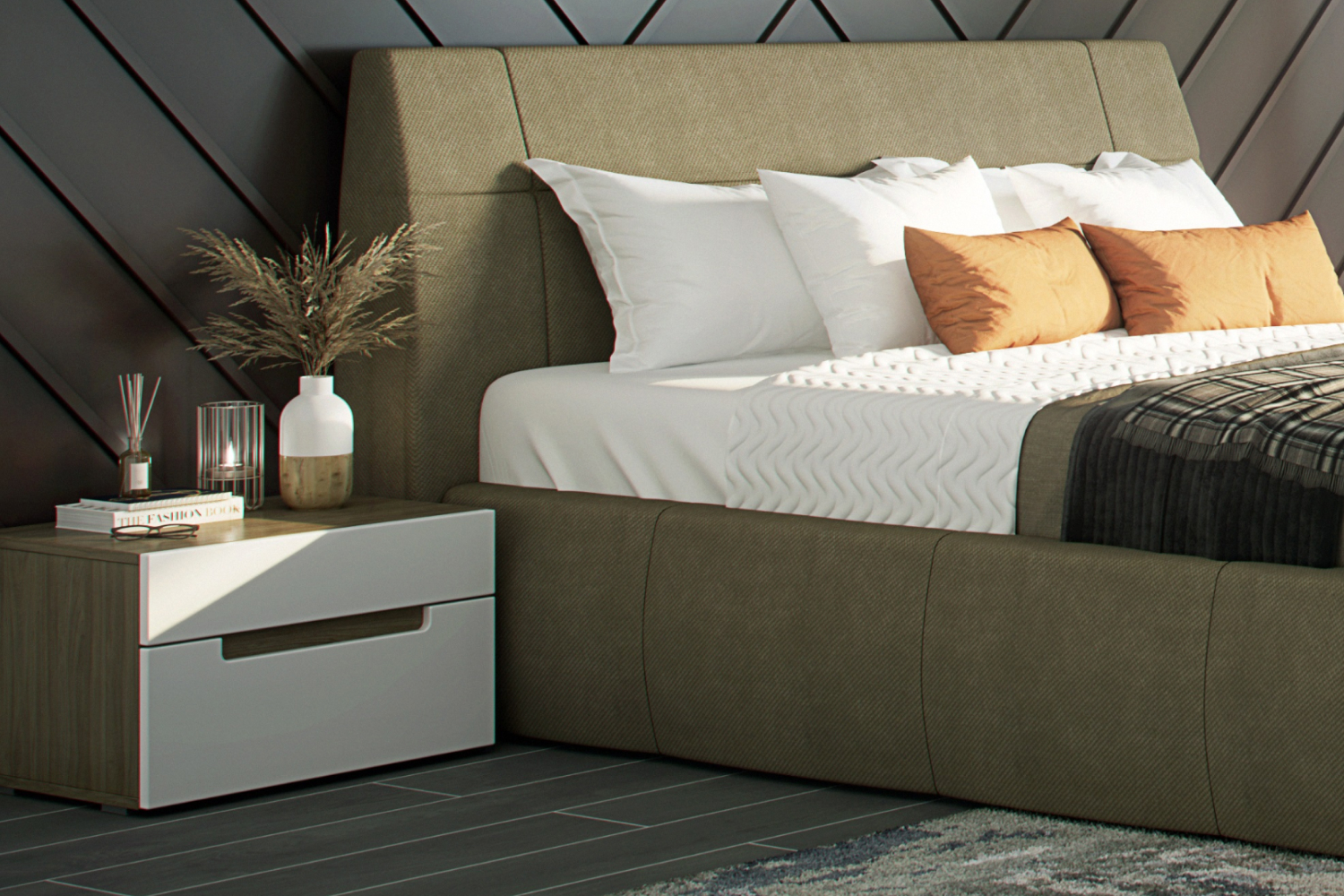 - Спальня в современном стиле. Такая мебель универсальна и подойдет интерьерам в стилях эко, скандинавский, минимализм или лофт;