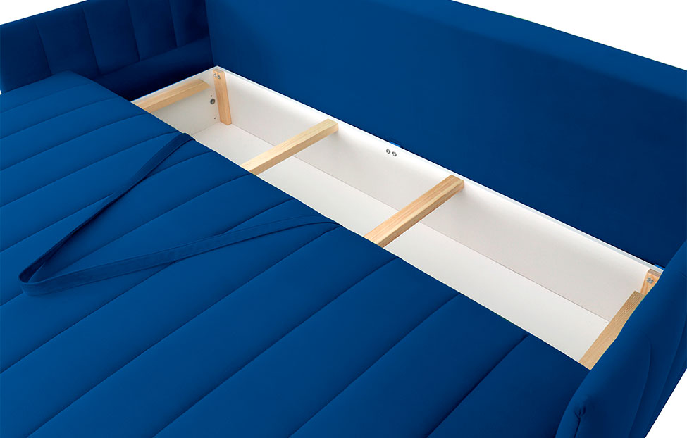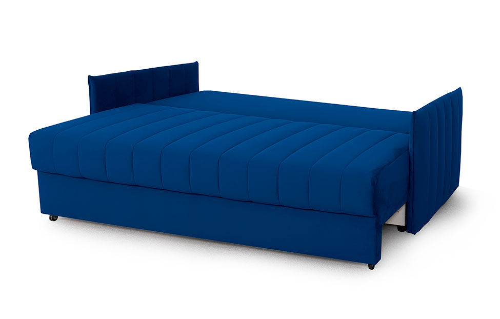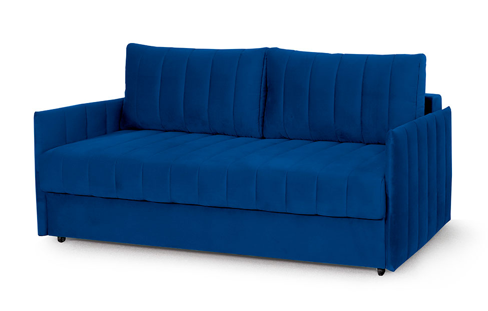 – описание: стиль современный, материал обивки велюр, цвет синий (мора синий), размер спального места 150 х 192 см.