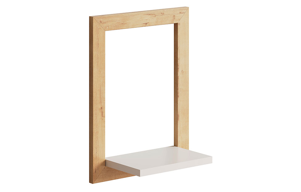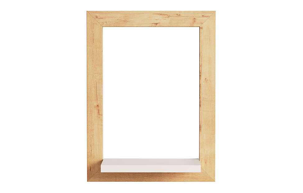 Вертикально ориентированная полочка великолепно встроится в интерьер спальни, гостиной, входной зоны, молодежной комнаты. Контрастное дизайнерское решение выглядит свежо и эффектно: полка выполнена в оттенке «белый премиум», а рамочное обрамление — в нейтральном древесном цвете. Тон «бунратти» — это классическая текстура дубовой древесины с более темными, чем основной фон, сучками.