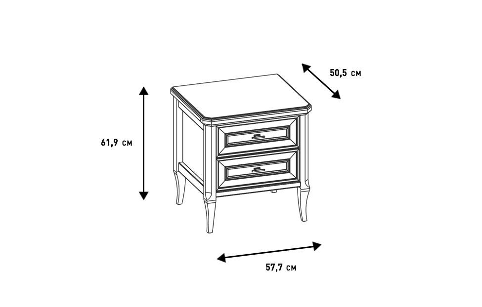 - Тумба прикроватная с двумя выдвижными ящиками;