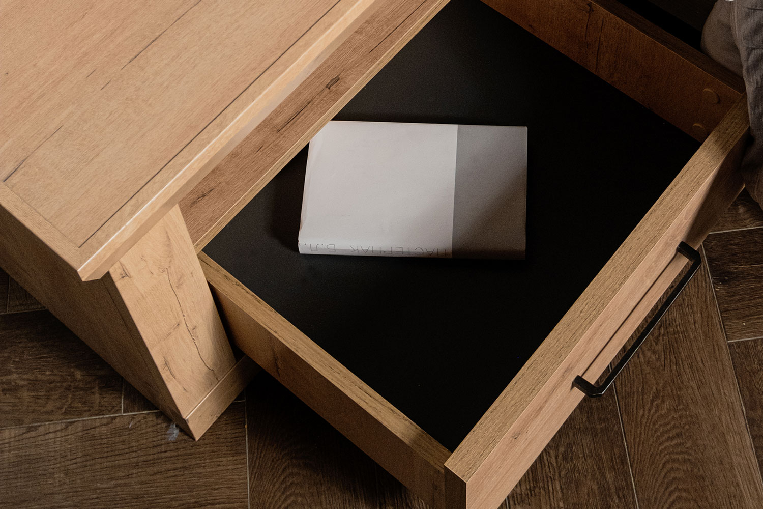 - В выдвижных ящиках используется система скрытых направляющих со встроенным демпфером. Это позволяет легко и почти бесшумно выдвигать-задвигать ящики, а также обеспечивает надежную фиксацию ящика и гарантирует длительный срок службы даже при высокой нагрузке.