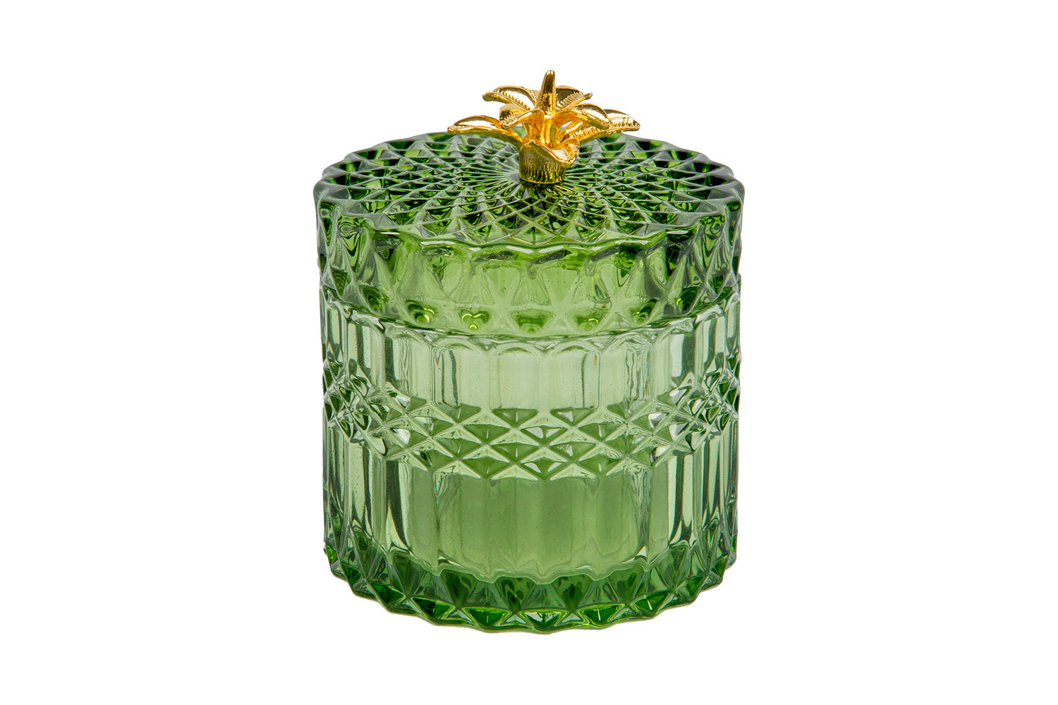 Прозрачные шкатулки из цветного стекла — практичный и эстетичный способ навести порядок в мелочах. В шкатулке с крышкой легко хранить украшения и аксессуары для волос, нитки и иголки, важные записки и даже канцелярию. Удобная ручка в виде нескольких золотистых лепестков, трендовые оттенки — зеленый, оливковый, шоколадный; округлая форма и прозрачный орнамент — всё соответствует популярным природным мотивам в интерьере. Шкатулка с переливающимися на солнце или в свете ночника гранями выглядит как настоящая драгоценность и элегантно украсит собой ваш подзеркальный столик.