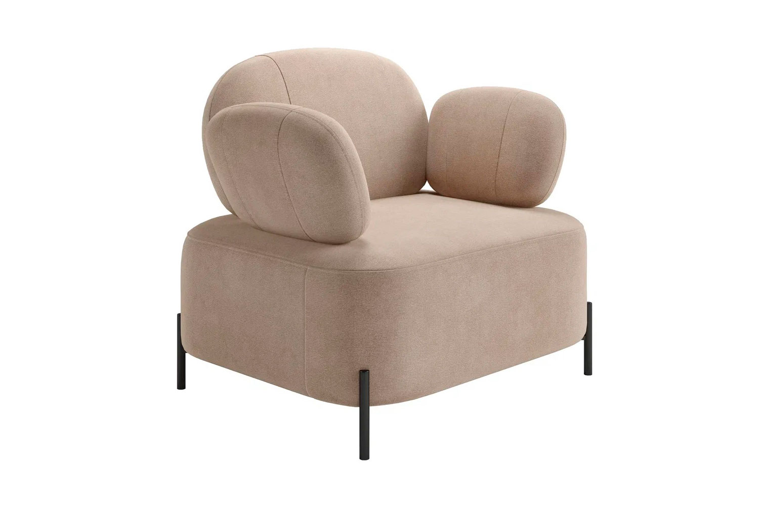 Отсутствие острых углов, плавность линий и объемность форм говорит об удобстве и безопасности модели. Вертикальные швы на чехлах спинки и подлокотников создают легкий акцент в сдержанном дизайне модели.