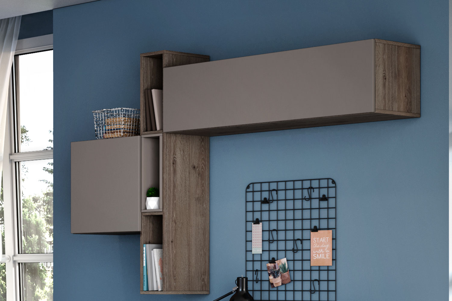 - Корпуса выполнены в цвете «давос трюфель», фасады — в цвете «бежевый»;