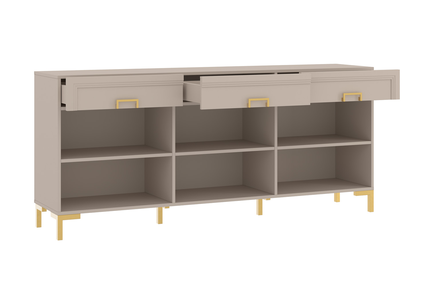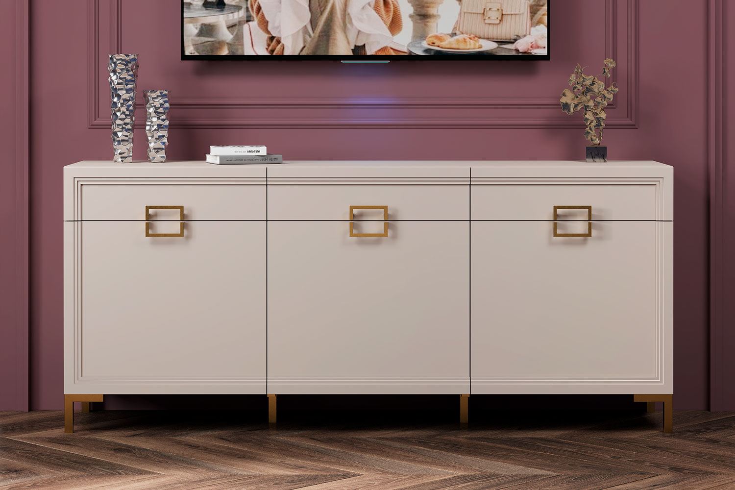 - Тумба с тремя выдвижными ящиками и тремя рамочными фасадами со вставкой ЛДСП 16 мм;