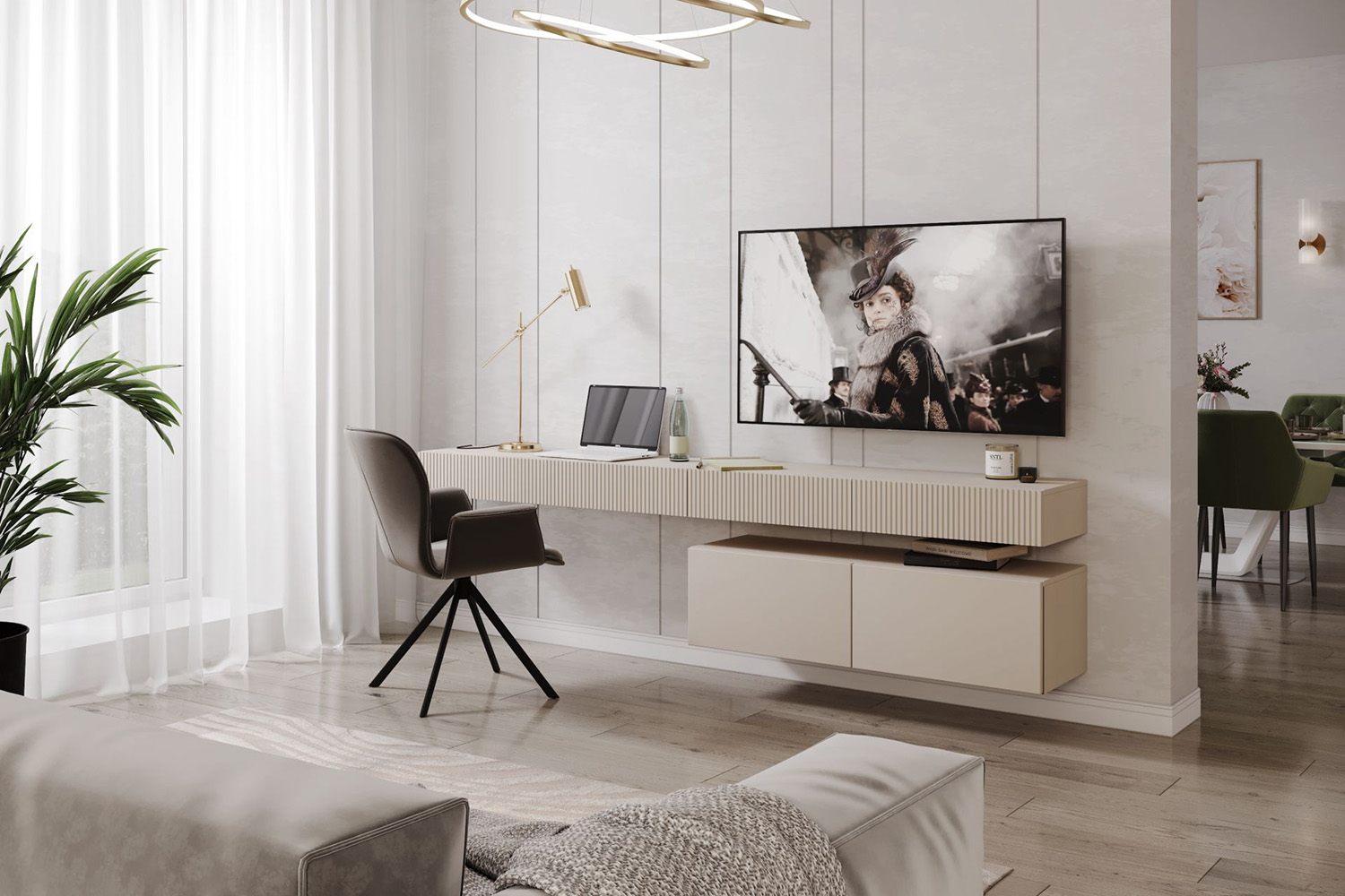 – описание: стиль ар-деко, минимализм, размер 136.1x252.2x37.1 см, цвет кашемир серый.