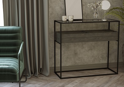 Лофт — это стиль, который прекрасно подойдет для практичных людей. А стол, выполненный в таком стиле, станет замечательным дополнением любого интерьера. Конструкция придиванного столика Остин позволяет расположить столешницу прямо над диваном или боковиной дивана, что достаточно удобно и функционально. Данный предмет мебели в декоре лофт будет отличаться лаконичной простотой, без излишеств. Данная модель придиванного столика несомненно порадует Вас своим простым и в то же время стильным и современным исполнением. Эстетическая составляющая — столешница с идеально глянцевой поверхностью из стекла Lacobel. Придиванный столик Остин своей лаконичностью и необычным оформлением без сомнений дополнит интерьер помещения и будет акцентировать внимание. Благодаря габаритным размерам стол Остин можно с легкостью расположить в пространстве гостиной или офиса. В комплект входит вся необходимая фурнитура и удобная инструкция для сборки. Максимальная нагрузка до 5 кг.