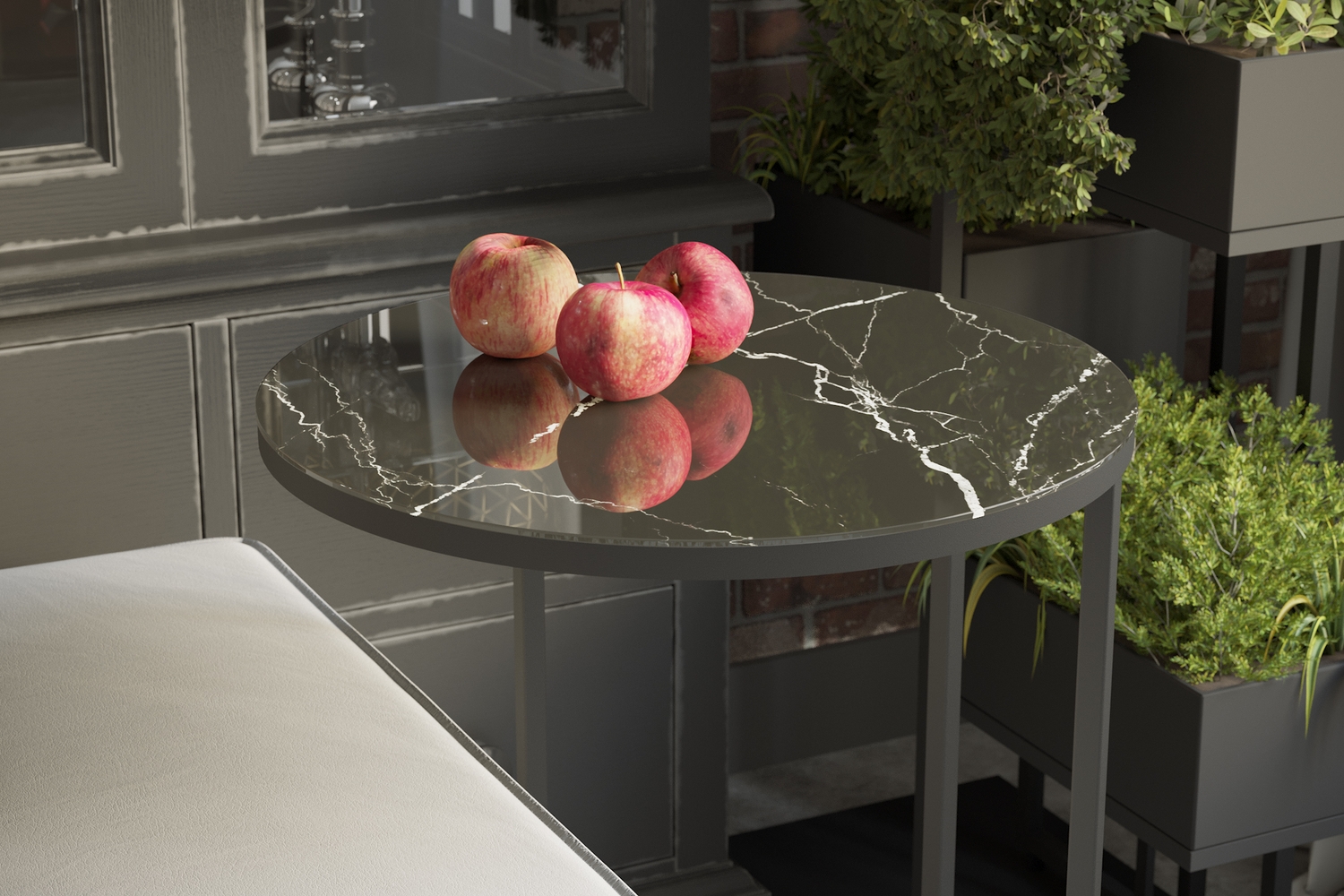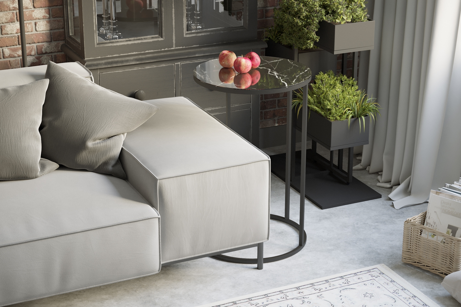Лофт — это стиль, который прекрасно подойдет для практичных людей. А стол, выполненный в таком стиле, станет замечательным дополнением любого интерьера. Конструкция придиванного столика Остин позволяет расположить столешницу прямо над диваном или боковиной дивана, что достаточно удобно и функционально. Данный предмет мебели в декоре лофт будет отличаться лаконичной простотой, без излишеств. Техническая виртуозность исполнения столешницы подчеркивается яркой УФ печатью в эксклюзивных цветах, благодаря чему данная модель приобретает визуальную утонченность. Цветовая гамма столешницы из закаленного стекла с УФ печатью с точность передает природный рисунок в цвете зеленый мрамор или неро. Благодаря габаритным размерам стол Остин можно с легкостью расположить в пространстве гостиной или офиса. В комплект входит вся необходимая фурнитура и удобная инструкция для сборки. Максимальная нагрузка до 5 кг.