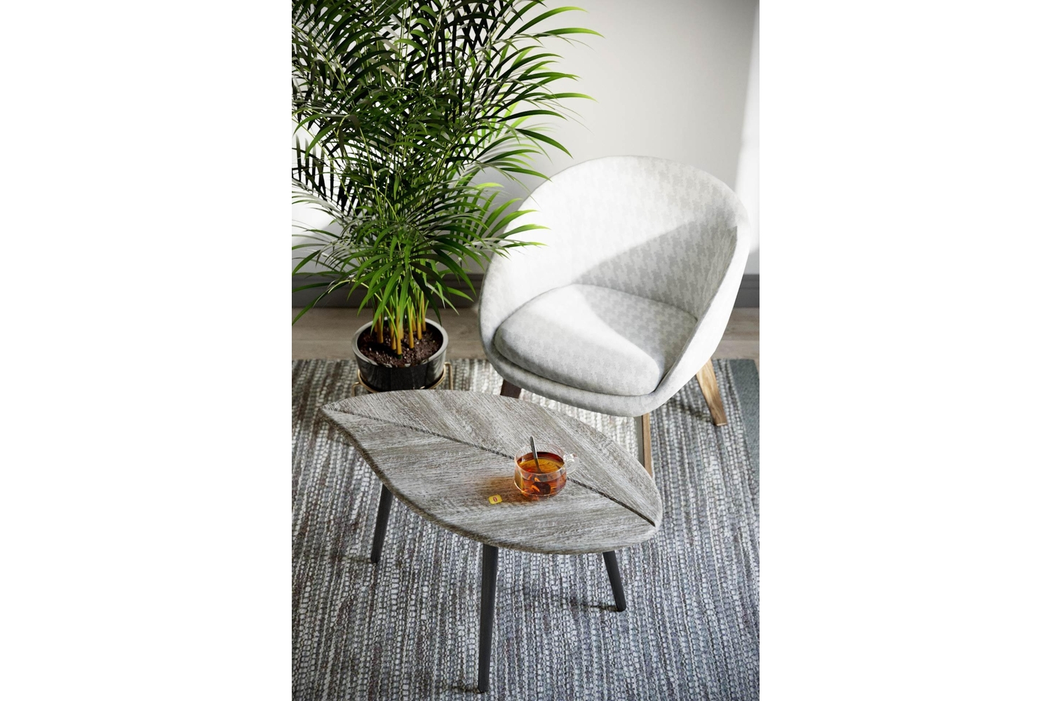 Журнальный стол вносит в интерьер гостиной комфорт и подчеркивает его эстетику. Зачастую подобный столик бывает главным столом в доме. Он помогает хозяевам встречать гостей, работать. Особенностью дизайнерского решения журнального стола «Берли» является оригинальное сочетание фрезеровки столешницы в форме листа дерева и текстуры декоративного покрытия.