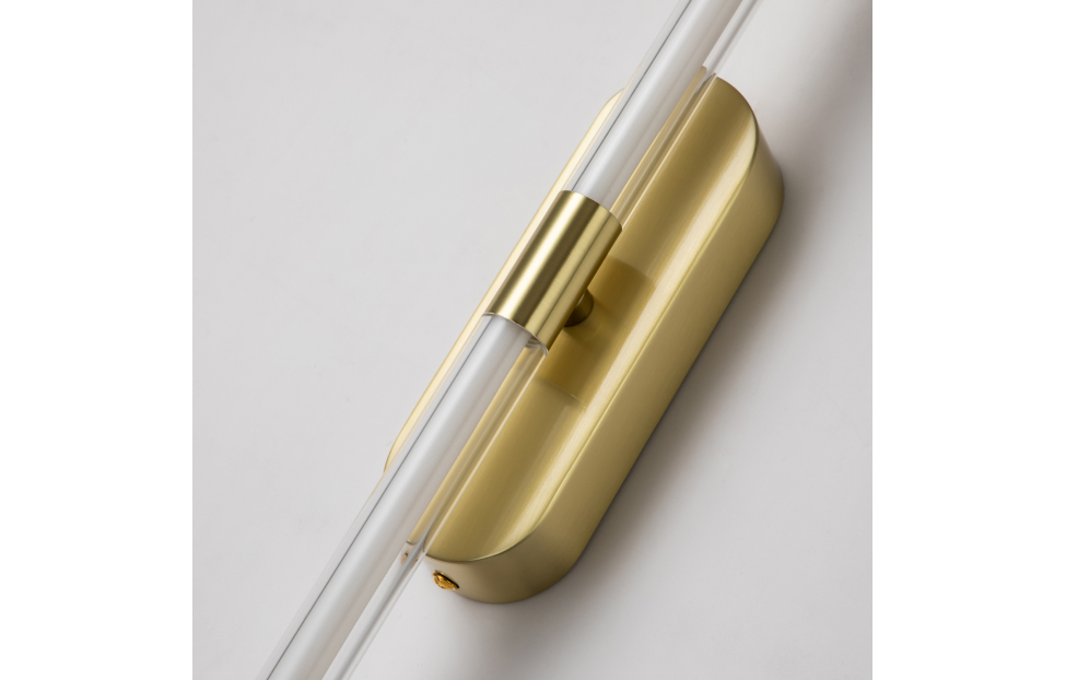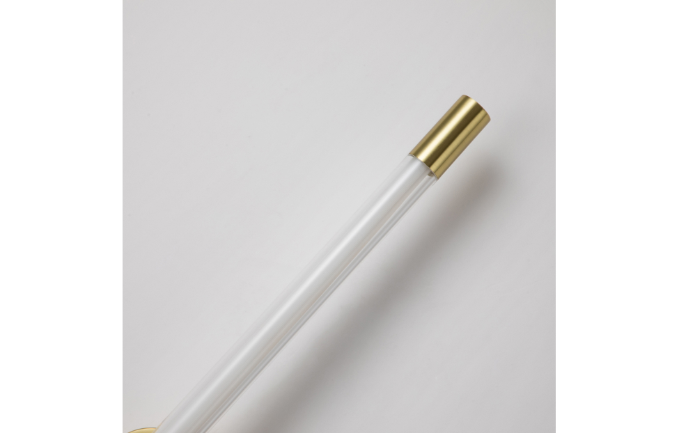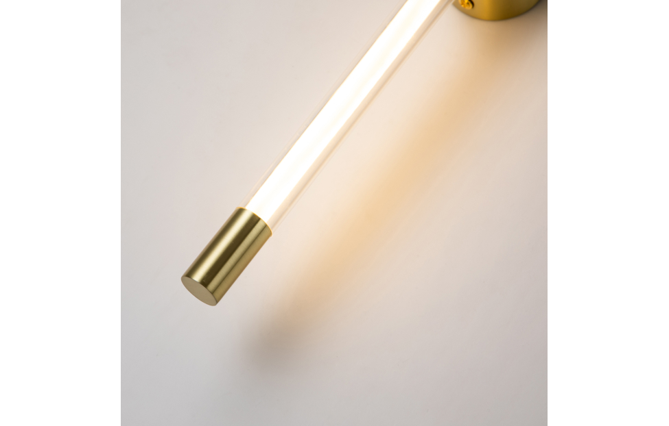 Arrow – коллекция настенных светильников в цвете золотой гальваники. Плафоны выполнены из белого полупрозрачного акрила. Светильники можно крепить как горизонтально, так и вертикально. Они подойдут для интерьеров как в классическом стиле, так и в стиле хай-тек.