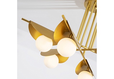 Kernel по задумке дизайнера – это стилизация природного явления: светильники напоминают жемчужину в раковине. Золотой цвет металлического каркаса подчеркивает яркость белых выдувных плафонов.
