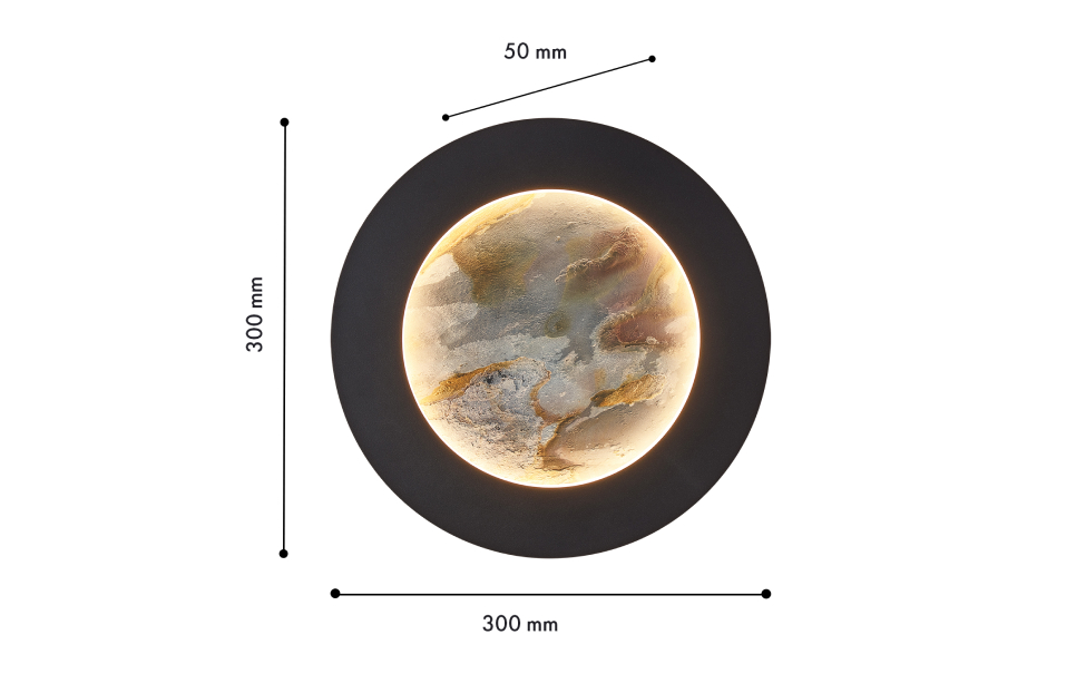 Коллекция Lago расширяет границы визуального восприятия декоративного материла LAGO натуральный песчаник, умелое использование которого сделает любой интерьер авторским. Настенные светильники оснащены двумя источниками света. Свет от LED-ленты, обрамляющий периметр декоративного диска на внешней стороне бра, выделяет фактуру камня и мягко освещает пространство вокруг. Второй источник света направлен в сторону стены и подсвечивает заднюю поверхность светильника, создавая ощущение, как будто он парит в воздухе в лучах света. Металлический каркас в матовом черном цвете, белый рассеивать из акрила, лента LED по периметру декоративного диска из натурального камня "зеленый песчаник" и на задней поверхности.