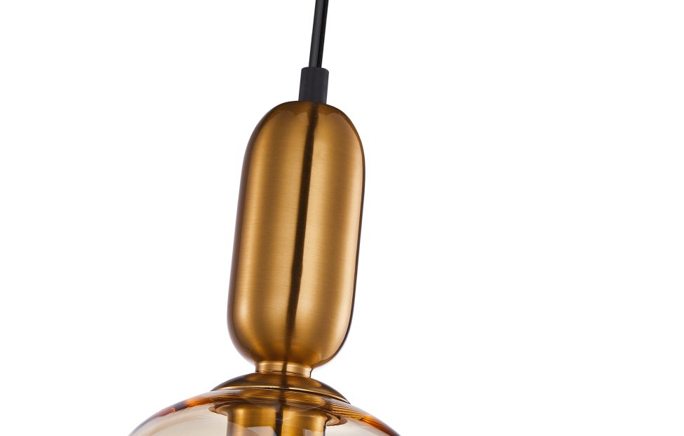 Подвесные светильники Dubbel станут идеальным решением для тех, кто ценит элегантность, функциональность и современный дизайн. Особенностью коллекции стало разнообразие форм стеклянных выдувных плафонов, которые представлены в пяти вариациях, в сочетании с металлическими элементами. Металлический каркас в цвете латунь, выдувной плафон янтарного цвета, цоколь Е27,сменная лампа, регулируемая высота.